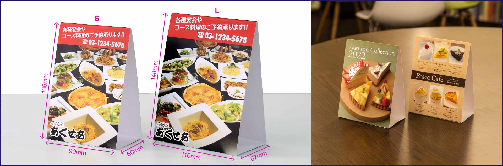 All tabletop POP printing at ACCEA is on-demand. The advantages of on-demand printing include ultra-fast turnaround—even for large quantities—with same-day or next-day completion, immediate shipping, and in-store pickup. Ideal for restaurant menus, POP displays, events, exhibitions, tabletop POP, posters, panels, and other promotional tools.